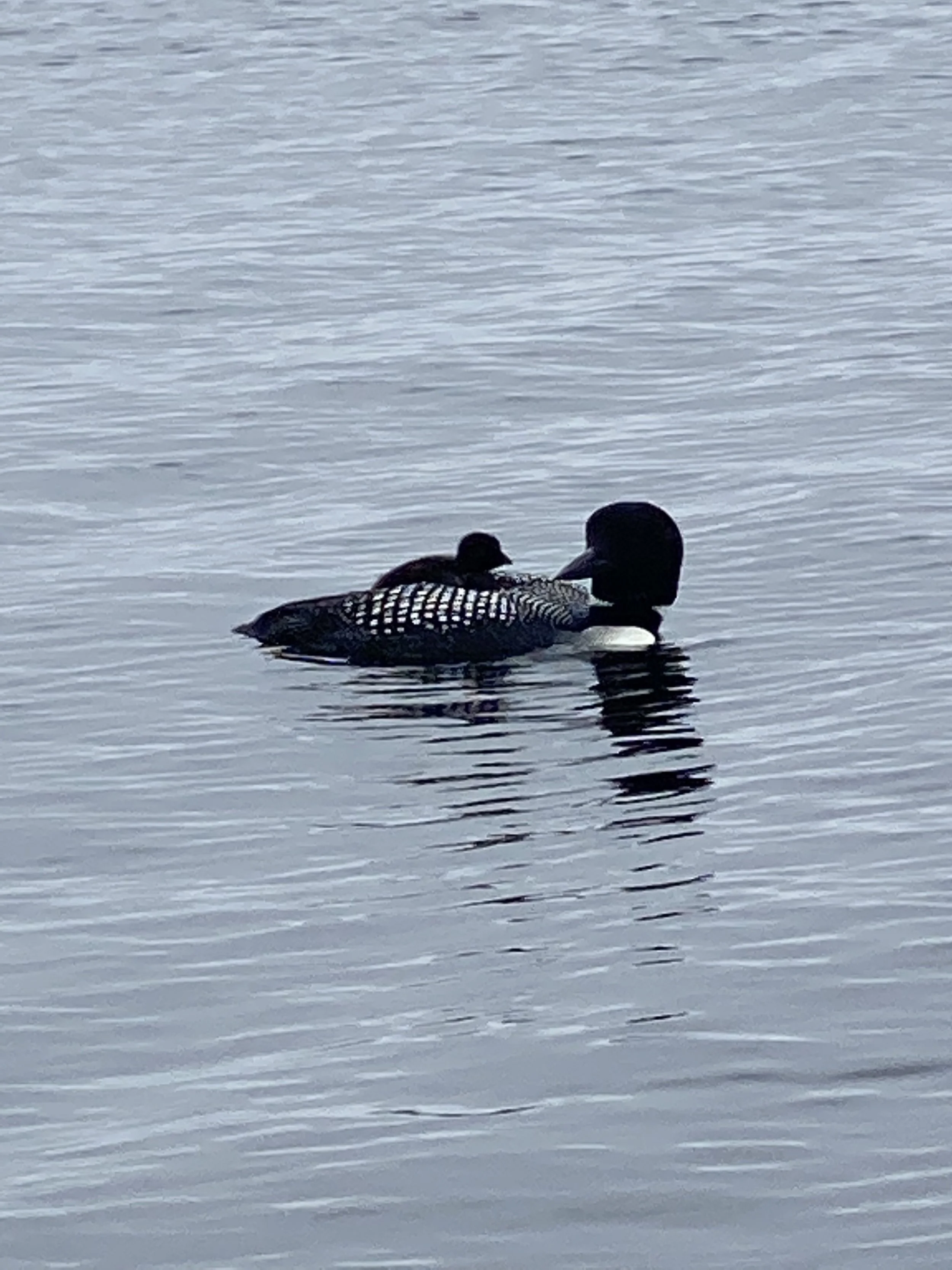 Baby Loon on Momma's Back, Long Beach, Sturgeon