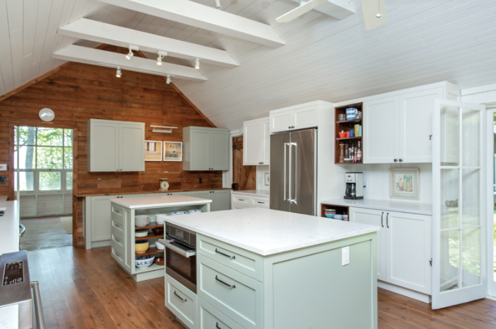 In this historical cottage renovation, we used multiple islands to add more prep space. We kept the bottom cabinet colour in a palette that reflected the overall background and history of the property.